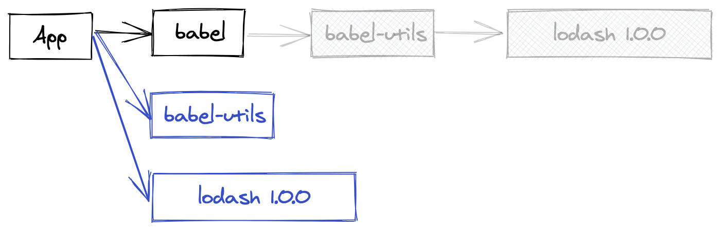 If Babel had instead defined Lodash 1 as its own dependency, the package manager would have been able to encode this constraint and ensure that the requirement would have been met regardless of the hoisting.